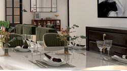 Egy világos, tágas családi otthon, ahol a funkció és az esztétika kéz a kézben jár. A megbízó célja egy visszafogott, mégis stílusos enteriőr volt, ahol természetes anyagok, geometrikus formák és meleg tónusok uralkodnak.